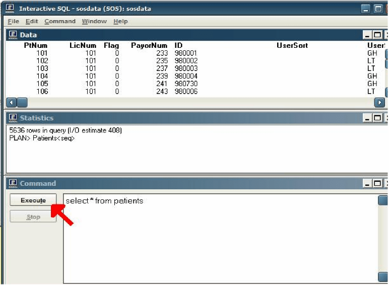 - Launch the ISQL utility by doing Start > Programs > SOS Applications > DBISQLC. (In Release 2005 and later, DBISQLC is supplemented by a somewhat different version called DBISQLG.)