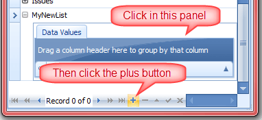 - Make sure that the Data Values panel is selected by clicking anywhere within it, then click the little plus button at the bottom of the window: