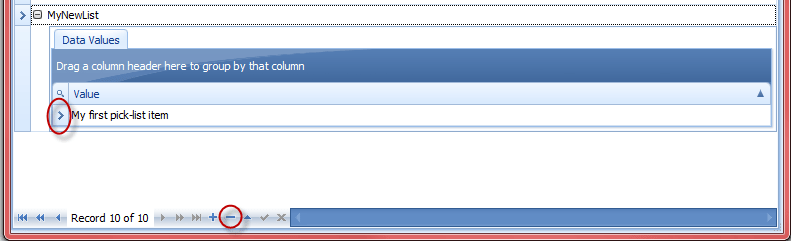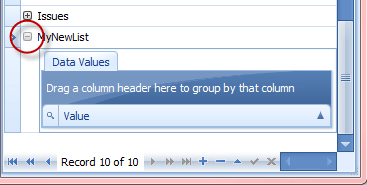 - Click the little plus box to the left of the list you would like to maintain. The Data Values panel will open, showing the items on your list.