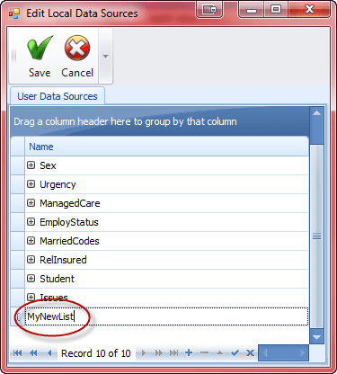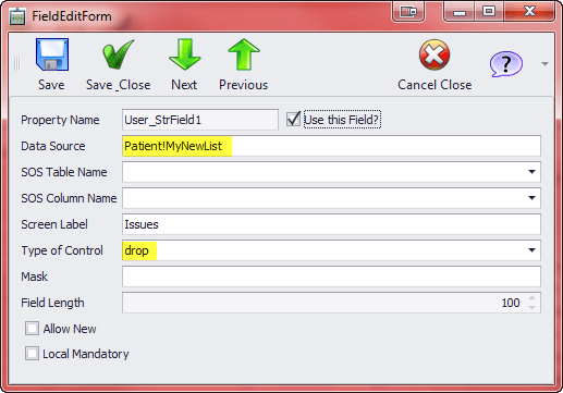 - In the Data Source field type Patient!MyNewList, replacing “MyNewList” with the name of the list you just created in First Contact. Make sure that you include the exclamation mark between “Patient” and the name of your list.