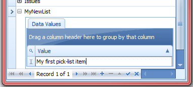 - An empty row will appear in the Data Values panel. Type the first item for your pick-list, then press ENTER on your keyboard.